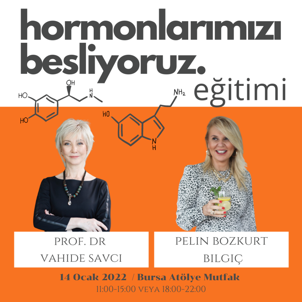 Hormonlarımızı doğru beslersek, hangi hormonların hangi davranışlara sebep olduğunu bilirsek, çok daha doğru bir yaşama adım atmış olacağız.” diyen Pelin Bozkurt Bilgiç bu eğitim serisine Bursa’da başlıyor. Bursa’da Prof. Dr. Vahide Savcı ile birlikte, Atölye Mutfak’da 14 Ocak 2021’de hem gündüz, hem de akşam seansı yapacaklar.