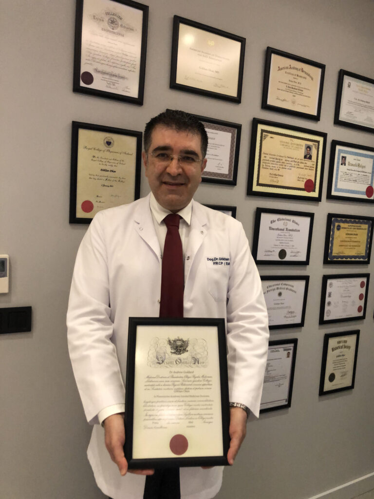 Dermatoloji Uzmanı Doç. Dr. Gökhan Okan, tıp alanında gösterdiği başarılarından dolayı Edinburgh, İrlanda ve Londra Doktorlar Koleji’nden tam üyelik aldı. Kolejlere ‘tam üyelik’ uzmanlık alanlarında mesleğine önemi katkıda bulunan sınırlı sayıda doktora veriliyor ve uluslararası arenada profesyonelliğin bir ölçütü olarak kabul ediliyor. Bu kolejler genelde Birleşik Krallık vatandaşlarının üye yapıldığı, uluslararası bilim insanlarının daha nadir olarak seçildiği kuruluşlar. Doç. Dr. Gökhan Okan bu kuruluşlara tam üyelikleri; bilimsel çalışmalarından dolayı önce yabancı meslektaşlarının önerisi, sonra kolejlerin konsey üyeleri ve en son olarak da uluslararası üyelerin değerlendirmesi sonrasında bu 3 kriteri geçerek elde edebildi.