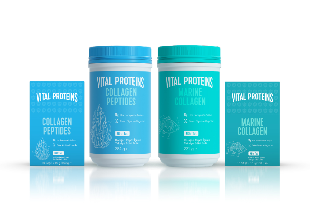 Nestlé Health Science Türkiye, dünyaca bilinen kolajen markalarından biri olan Vital Proteins’in Collagen Peptides ürününden sonra şimdi de Marine Collagen ürününü Türkiye’de tüketicilerle buluşturdu. Takviye edici gıda olan Vital Proteins Marine Collagen, günde 2 ölçek (10 g), ister sıcak ister soğuk 200 ml sıvı ile karıştırılarak günde 1 kez tüketilebiliyor. Nötr tadı sayesinde herhangi bir sıvının tadını, dokusunu ve kokusunu değiştirmeyen ürün, günün her saatinde kullanılabiliyor. Balıklardan elde edilen kolajen kaynağı olan Vital Proteins Marine Collagen, paleo diyetine uygun bir ürün olma özelliği taşıyor.Vital Proteins ürün ailesine, aynı zamanda Collagen Peptides ve Marine Collagen ürünlerinin kullanım ve taşıma kolaylığı sağlayan tek kullanımlık ambalajları da eklendi.